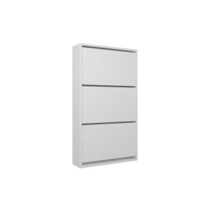 The shoe cabinet has a thin back with slots that allows you to install it tight against the wall easily with screws and a drill.